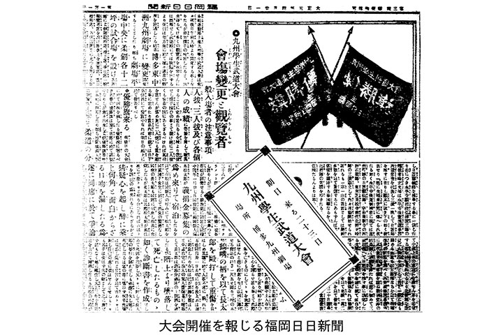 大正5年(1916年)現在の西日本新聞社の前身である当時の福岡日日新聞社が主催となり『九州学生武道大会』の名称で福岡県下12校の参加で初めて開催した。